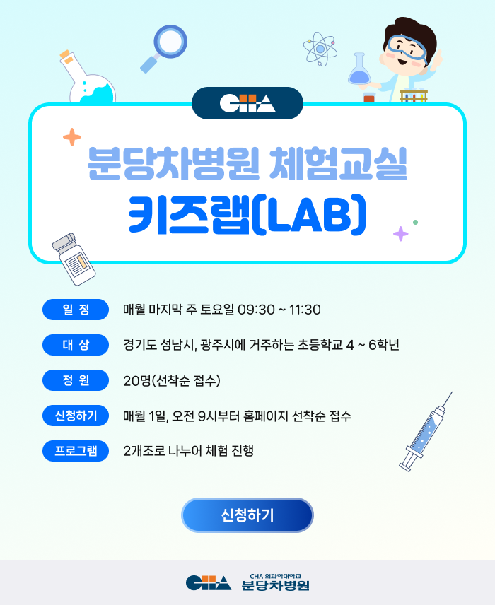 분당차병원 어린이 체험교실 : 차병원 키즈랩(LAB)